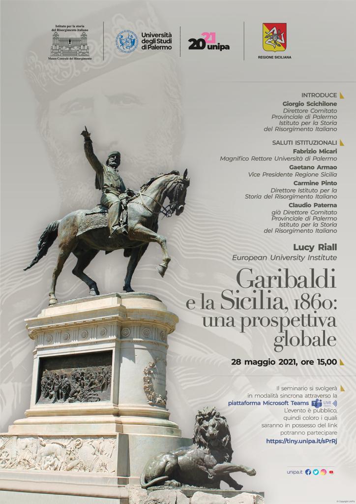 28 maggio 2021, ore 15:00 , Garibaldi e la Sicilia : 1860, una prospettiva globale . Locandina